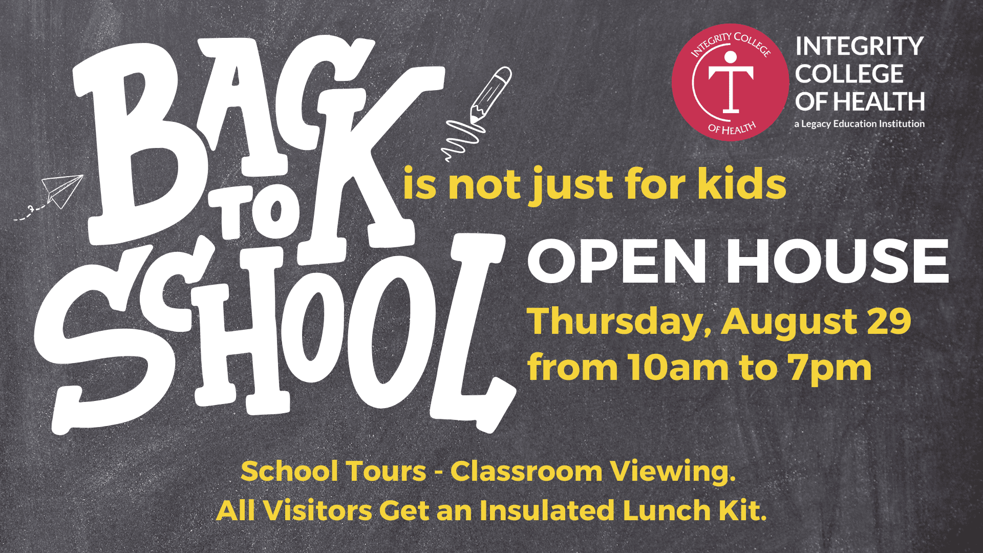 Join us for an All Day Open House at all Integrity College of Health in Pasadena on Thursday, August 29, 2024. Stop by anytime from 10am to 7pm.